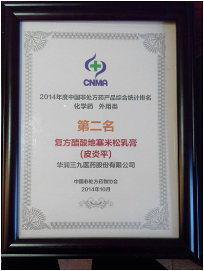 根據(jù)獲獎(jiǎng)名單,在綜合統(tǒng)計(jì)排名方面,華潤(rùn)三九榮獲企業(yè)綜合榜第一名;在非處方藥產(chǎn)品綜合統(tǒng)計(jì)排名方面,999感冒靈顆粒和強(qiáng)力枇杷露分別獲中成藥感冒咳嗽類的第一名和第四名,三九胃泰獲消化類第三名,999小兒感冒顆粒獲婦兒科類第三名,骨通貼膏獲外用類第四名,999皮炎平獲化藥外用類第二名,小兒氨酚黃那敏顆粒獲化藥兒科類第四名。此外,在品牌傳播獎(jiǎng)項(xiàng)方面,華潤(rùn)三九獲得五類獎(jiǎng)項(xiàng)中的三大獎(jiǎng):最佳平面廣告獎(jiǎng),最佳電視廣告獎(jiǎng)和最佳品牌傳播獎(jiǎng)。 (曾福)