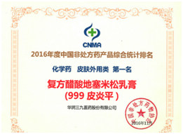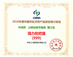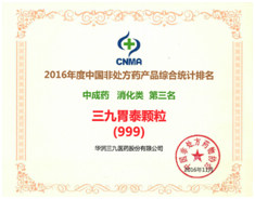 在產(chǎn)品品牌統(tǒng)計(jì)排名中,華潤(rùn)三九感冒‘’靈顆粒/膠囊自2009年以來連續(xù)七年獲得中成藥類感冒咳嗽類產(chǎn)品排名第一名,復(fù)方醋酸地塞米松乳膏(999皮炎平)榮獲化學(xué)藥類皮膚外用藥類第一名,三九胃泰榮獲中成藥類消化類藥物第三名,強(qiáng)力枇杷露榮獲中成藥類止咳化痰平喘類藥物第三名的好成績(jī)。多年來,華潤(rùn)三九持續(xù)蟬聯(lián)行業(yè)企業(yè)排行榜首位,多個(gè)產(chǎn)品連續(xù)位居排行榜前茅,一方面顯示了企業(yè)在非處方藥物領(lǐng)域的領(lǐng)導(dǎo)地位,另一方面提升了公司產(chǎn)品在消費(fèi)者心中的地位,使消費(fèi)者更加信賴華潤(rùn)三九的有關(guān)產(chǎn)品。