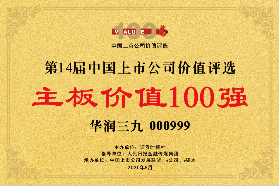 華潤三九再次榮膺中國主板上市公司“價值百強(qiáng)”