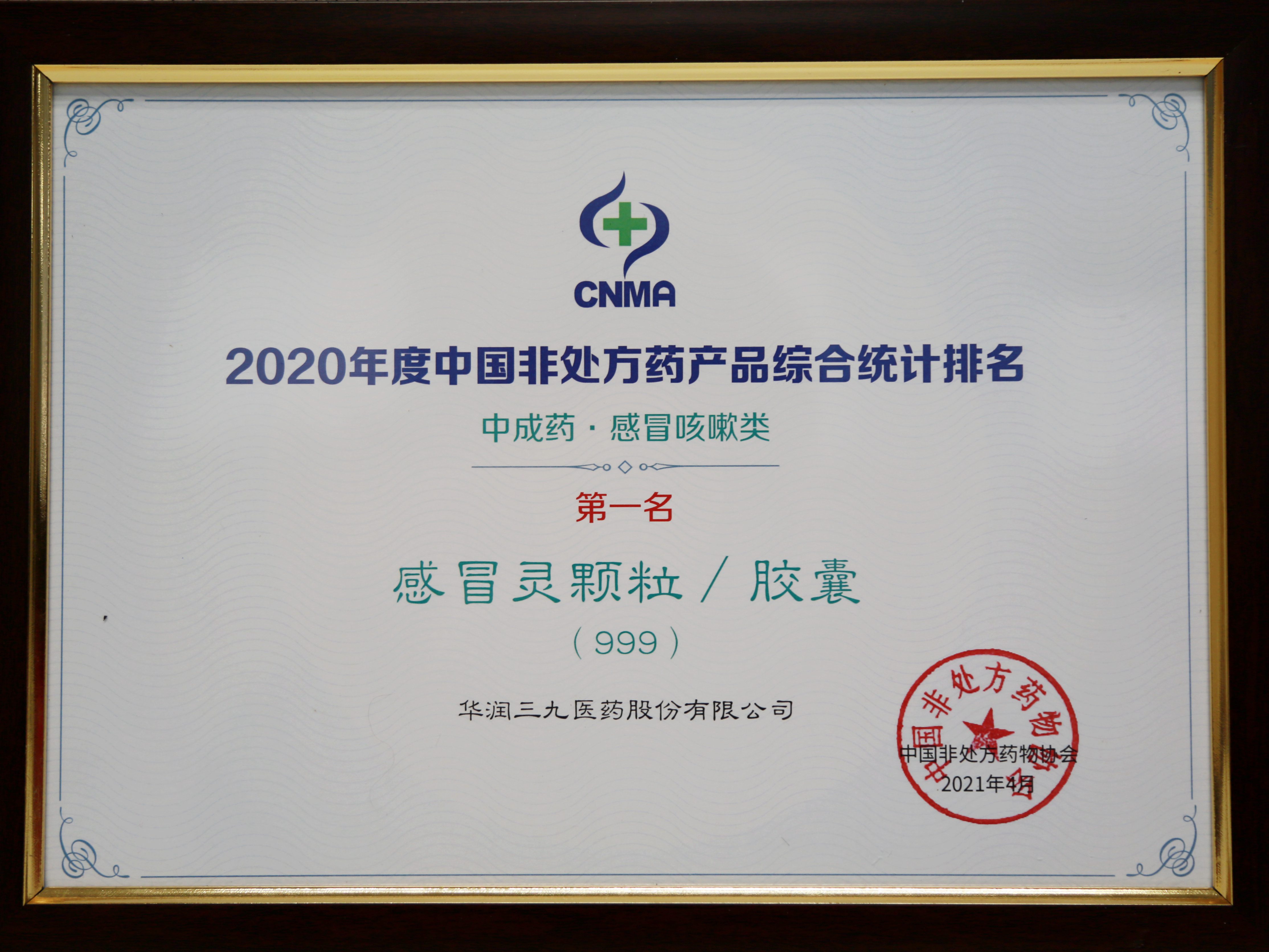 4月1日,由中國非處方藥協(xié)會主辦的“第十七屆中國自我藥療年會”,發(fā)布了2020年度中國非處方藥生產(chǎn)企業(yè)綜合統(tǒng)計排名,華潤三九再次榮登榜首。此外,999感冒靈顆粒/膠囊連續(xù)九年蟬聯(lián)感冒咳嗽類(中成藥)第一名,999復(fù)方醋酸地塞米松乳膏、多烯磷脂酰膽堿膠囊(易善復(fù))、999復(fù)方感冒靈顆粒在各自的品類排名中斬獲前三甲。