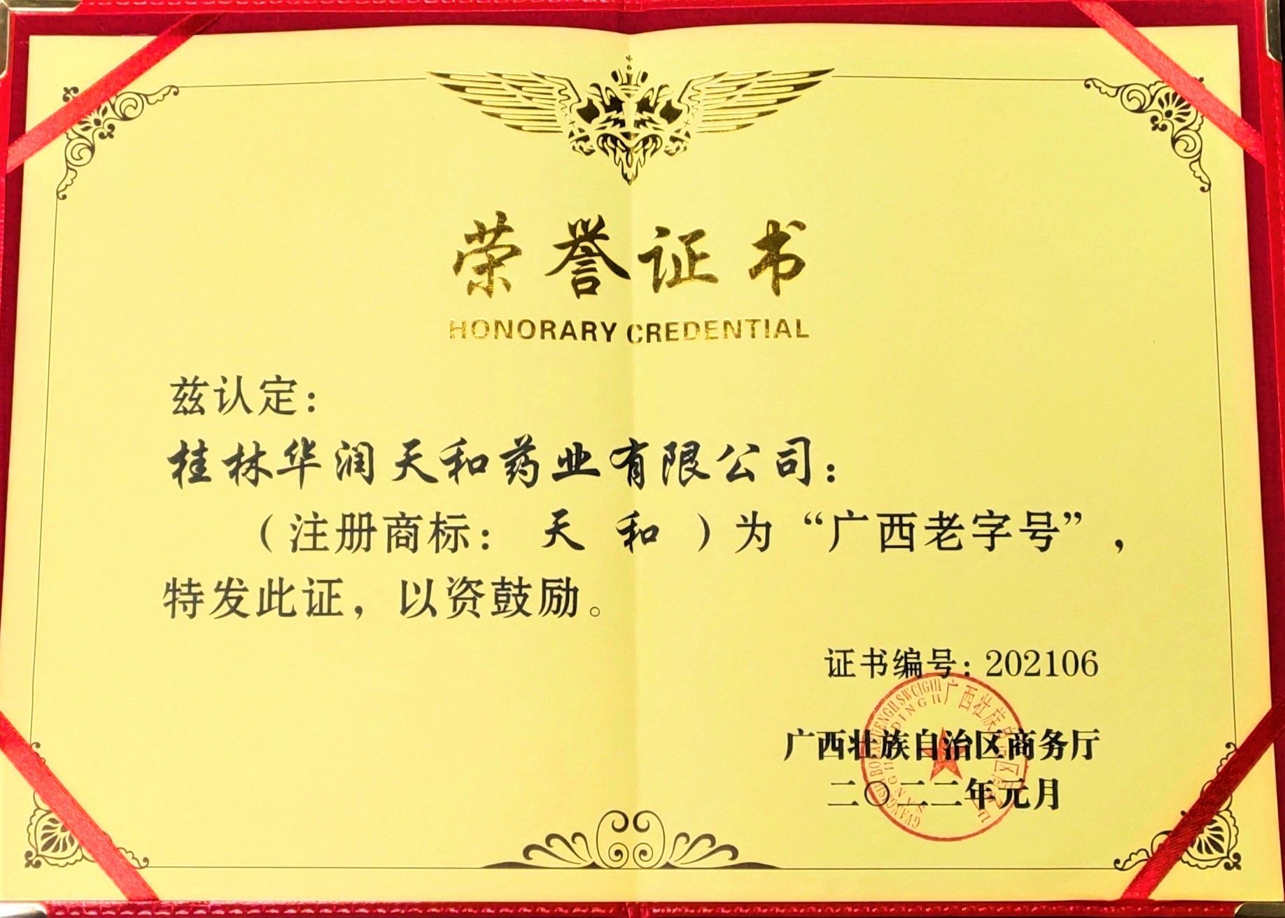 4月15日,廣西壯族自治區(qū)商務(wù)廳召開2022年全區(qū)老字號工作推進(jìn)會議,會上為2021年入選“廣西老字號”的13家企業(yè)頒發(fā)了榮譽證書和牌匾,華潤天和喜獲這一榮譽。