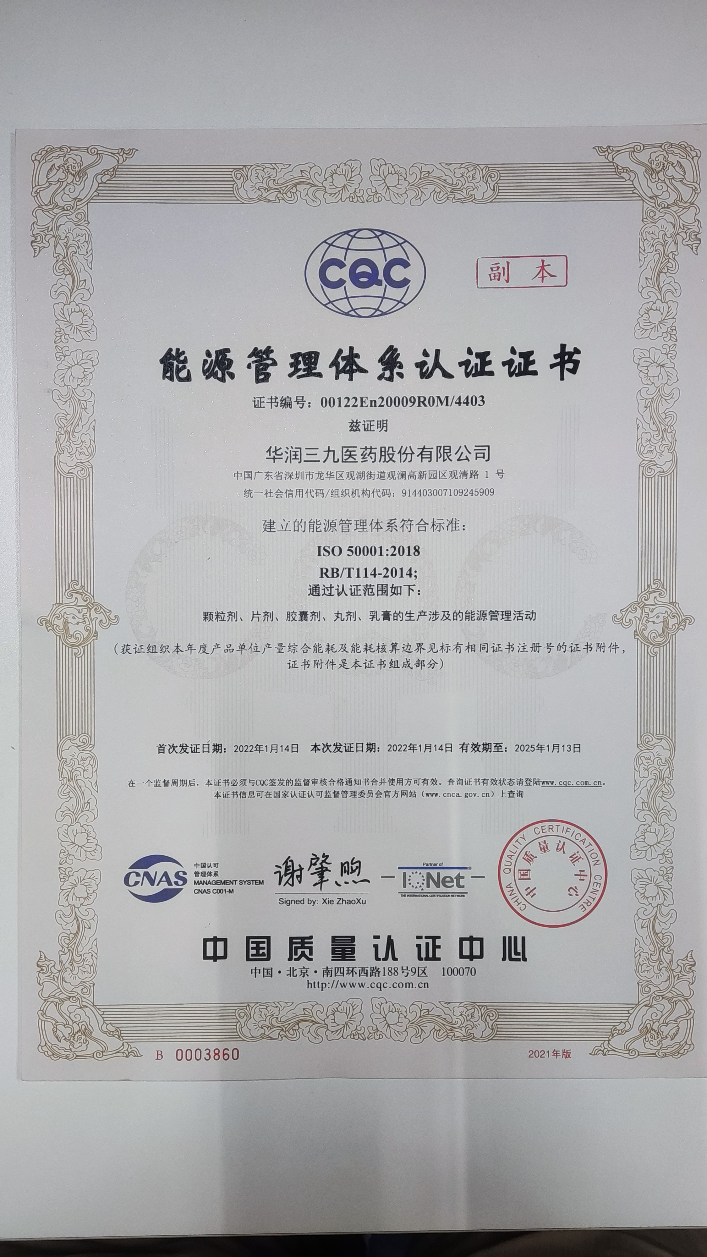 華潤(rùn)三九觀瀾基地通過ISO50001能源管理體系認(rèn)證,近日收到認(rèn)證證書。目前,觀瀾基地能源管理體系建設(shè)、生產(chǎn)節(jié)能管理在科學(xué)化、規(guī)范化、標(biāo)準(zhǔn)化等方面取得了顯著成效,力促碳達(dá)峰和碳中和“雙碳目標(biāo)”的達(dá)成。