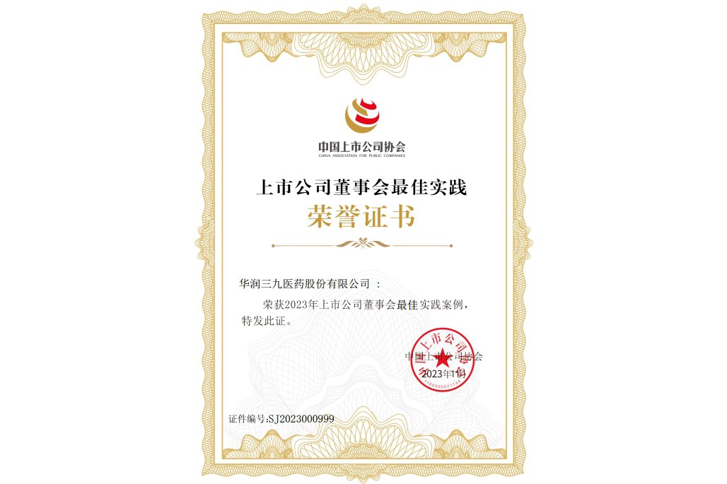 華潤三九及旗下昆藥集團(tuán)獲2023上市公司董事會兩項榮譽(yù)
