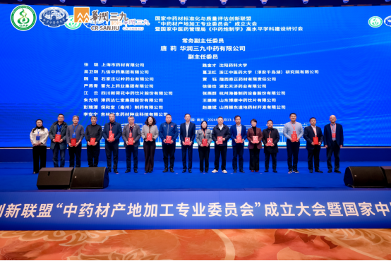 12月14日,華潤(rùn)三九聯(lián)合南京中醫(yī)藥大學(xué)在南京舉辦國(guó)家中藥材標(biāo)準(zhǔn)化與質(zhì)量評(píng)估創(chuàng)新聯(lián)盟(簡(jiǎn)稱“聯(lián)盟”)中藥材產(chǎn)地加工專業(yè)委員會(huì)(簡(jiǎn)稱“專委會(huì)”)成立大會(huì),華潤(rùn)三九中藥有限公司當(dāng)選為常務(wù)副主任委員單位、副秘書長(zhǎng)單位,華潤(rùn)三九中藥資源研究院院長(zhǎng)唐莉當(dāng)選為首屆常務(wù)副主任委員,華潤(rùn)三九(六安)、安徽潤(rùn)芙蓉等當(dāng)選為委員單位。