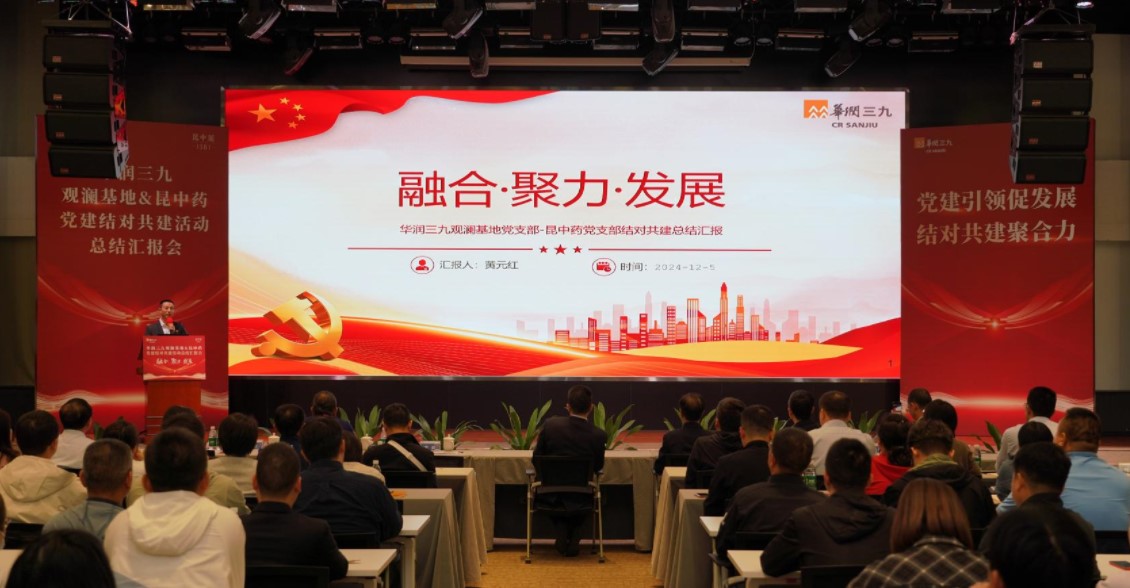 12月5日,以“融合.聚力.發(fā)展”為主題,華潤(rùn)三九觀瀾基地與昆中藥在深圳共同舉辦黨建結(jié)對(duì)共建總結(jié)匯報(bào)會(huì)。雙方一同回顧攜手共進(jìn)歷程,總結(jié)推進(jìn)融合發(fā)展的實(shí)踐及收獲。公司黨委書記、董事長(zhǎng)邱華偉出席會(huì)議并講話,黨委委員、副總裁麥毅出席會(huì)議,相關(guān)職能部門負(fù)責(zé)人及黨員和群團(tuán)代表共90余人參加會(huì)議。