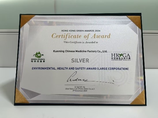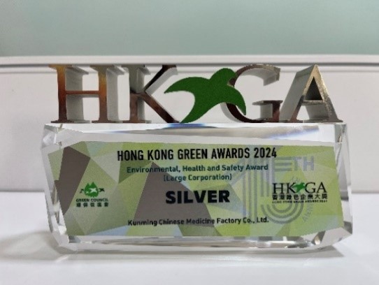 昆中藥榮獲2024年香港綠色企業(yè)大獎—“超卓環(huán)保安全健康獎”銀獎