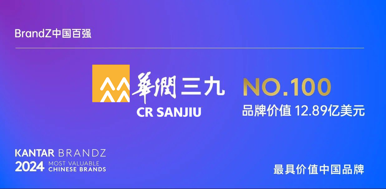 華潤三九再次上榜“2024凱度BrandZ最具價(jià)值中國品牌100強(qiáng)”