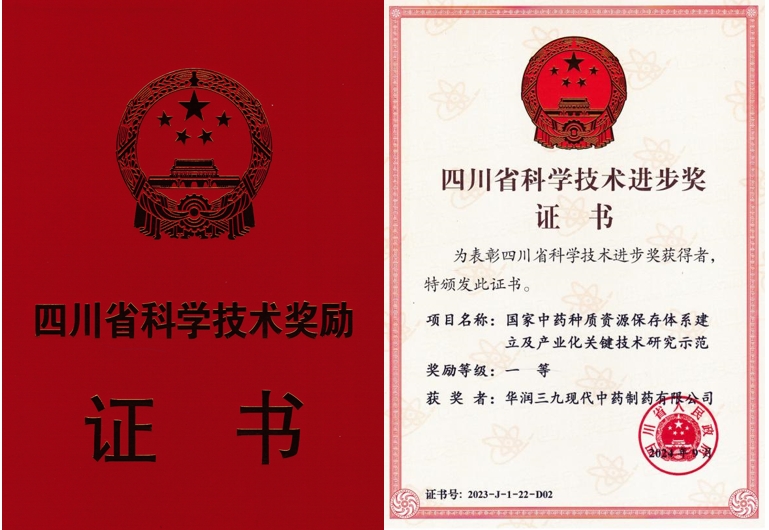 9月10日,四川省科技大會在成都隆重召開。會上宣讀了《四川省人民政府關于2023年度四川省科學技術獎勵的決定》,成都中醫(yī)藥大學、華潤三九現(xiàn)代中藥制藥有限公司、四川農(nóng)業(yè)大學、華潤三九(雅安)藥業(yè)有限公司聯(lián)合申報的“國家中藥種質資源保存體系建立及產(chǎn)業(yè)化關鍵技術研究示范”項目榮獲“四川省科學技術進步”一等獎。