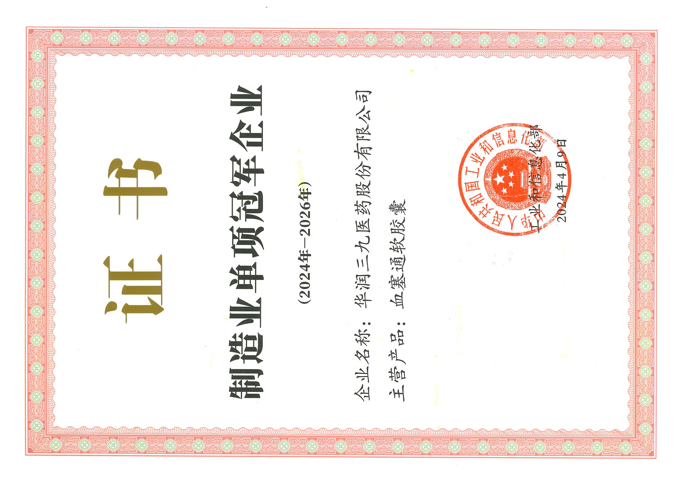 了解更多>>>華潤(rùn)三九獲頒國(guó)家級(jí)榮譽(yù)—“制造業(yè)單項(xiàng)冠軍”證書(shū)