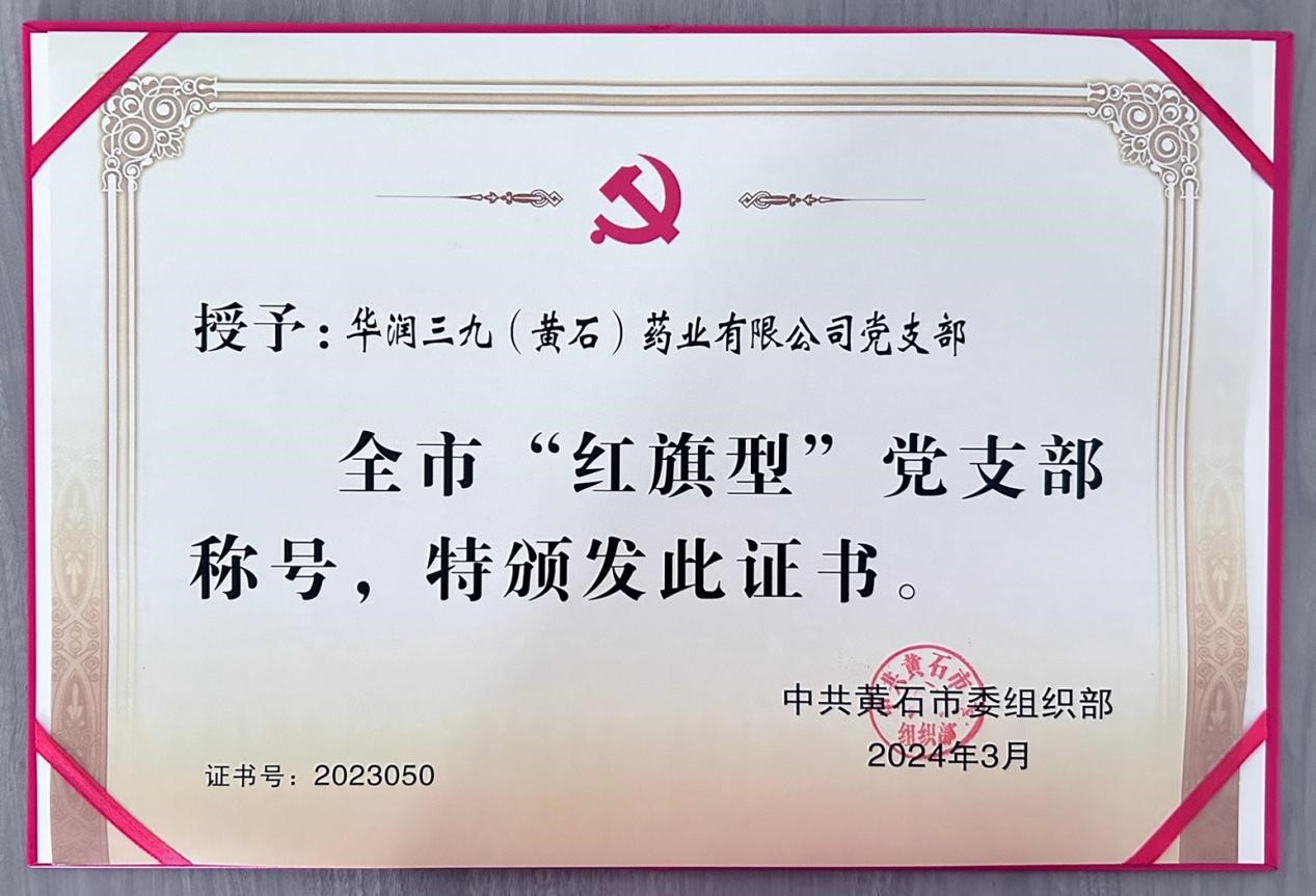華潤(rùn)三九(黃石)黨支部獲評(píng)黃石市“紅旗型”黨支部