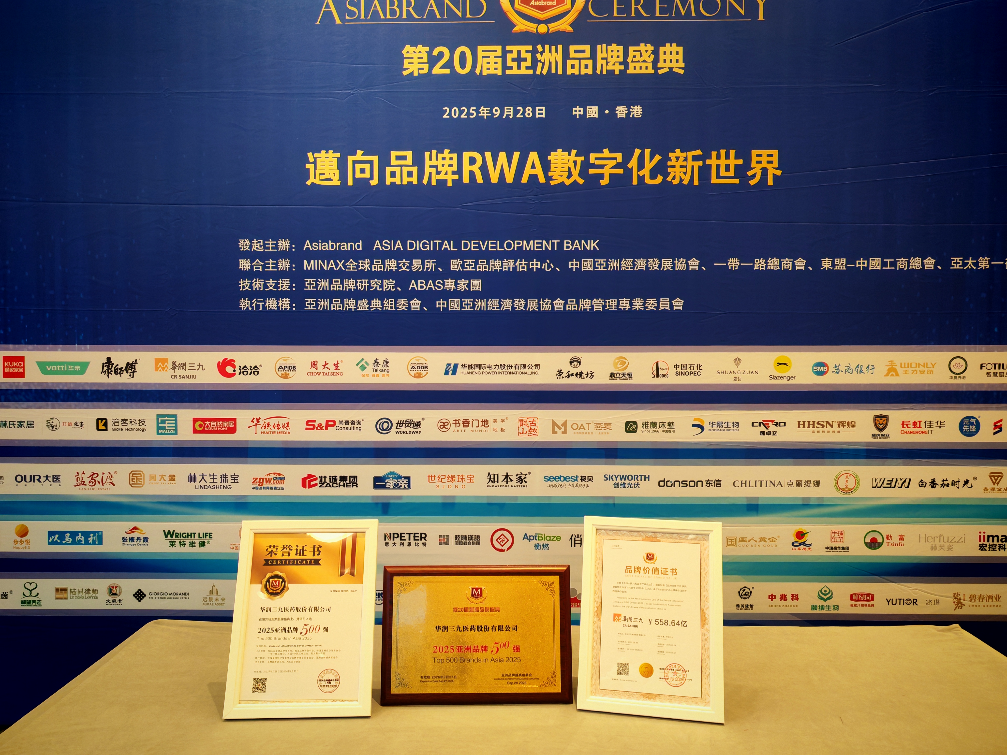 華潤三九入選2025亞洲品牌500強 品牌價值558億