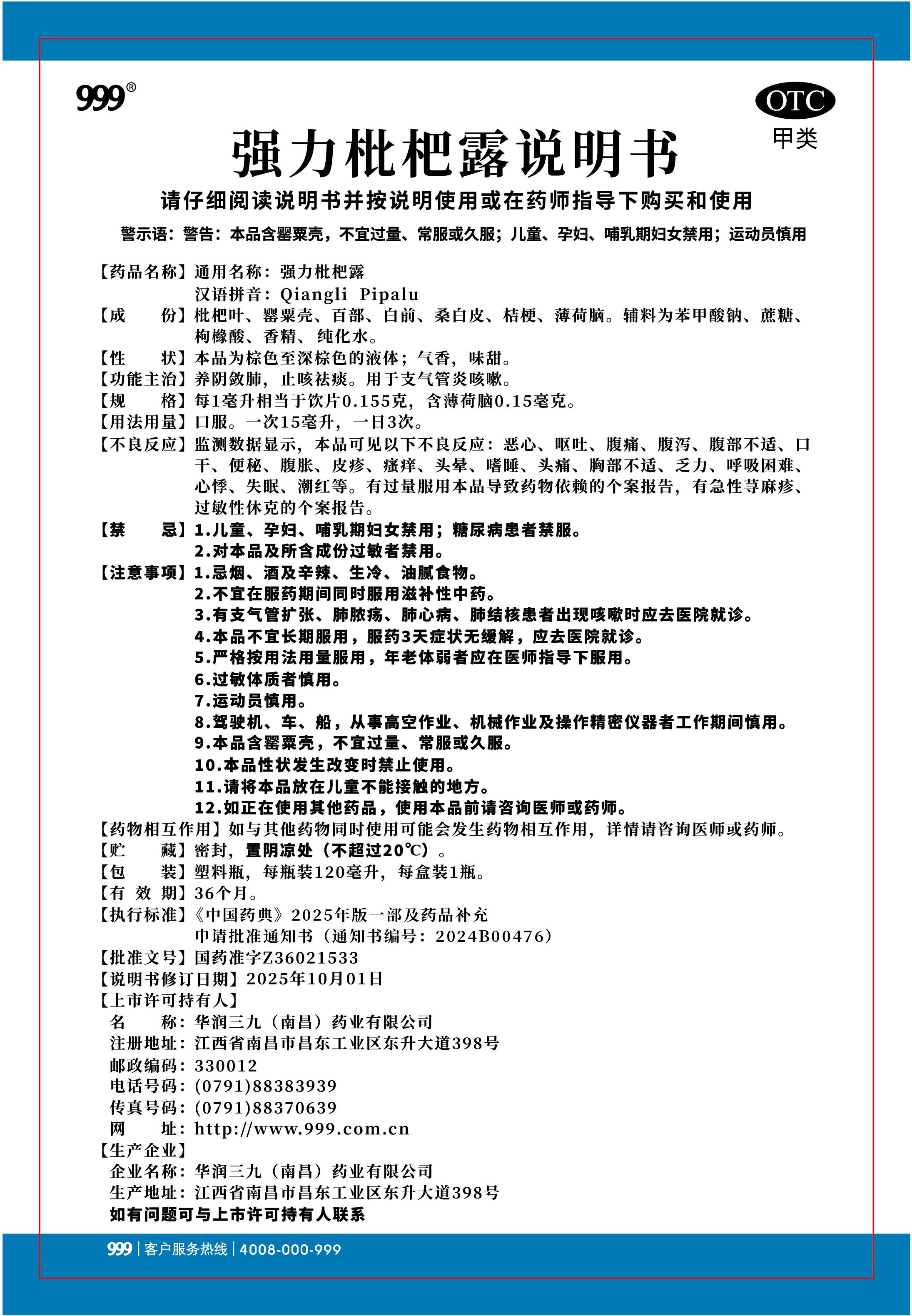 強力枇杷露-南昌三九(120毫升瓶裝)