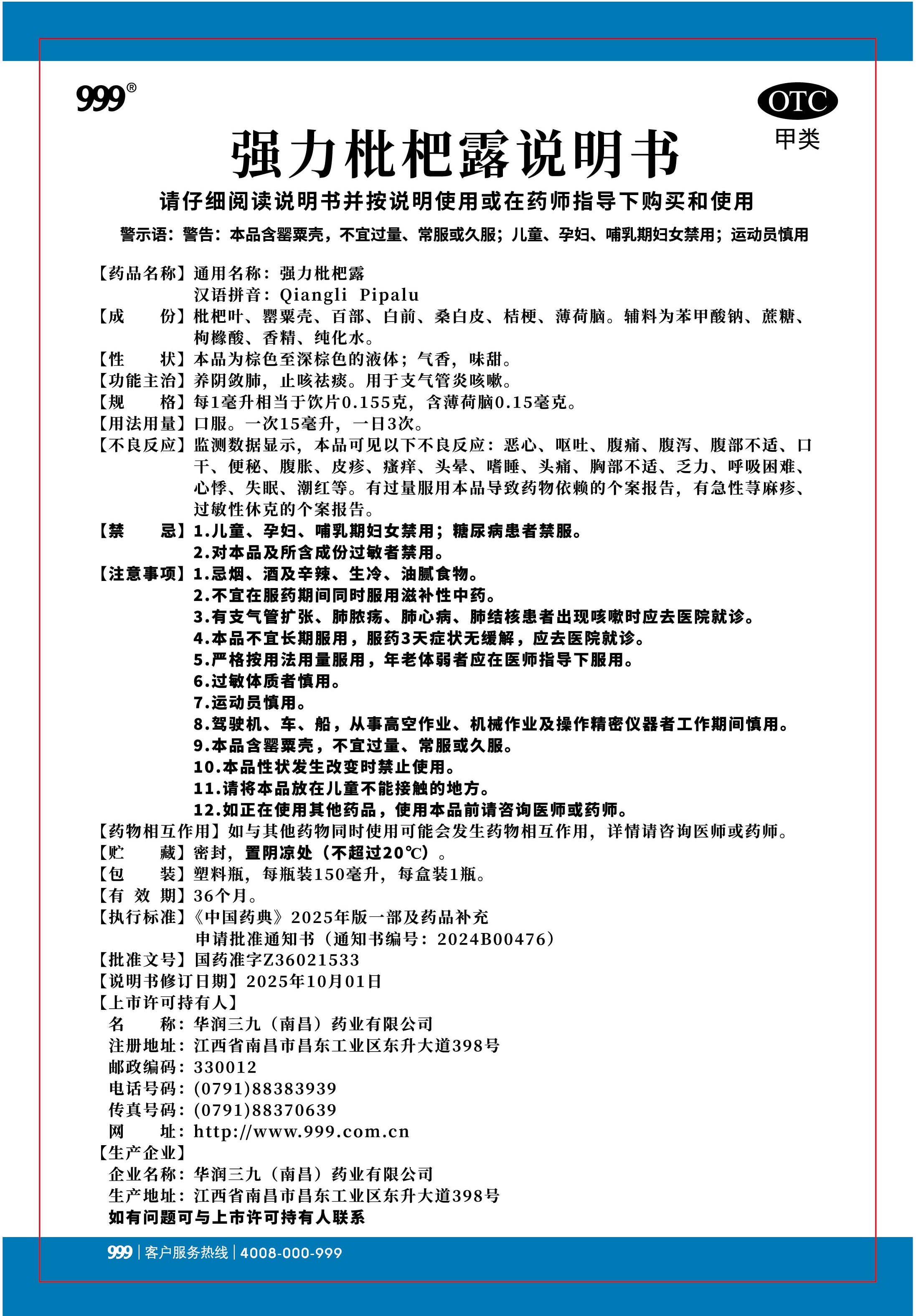 強力枇杷露-南昌三九(150毫升瓶裝)