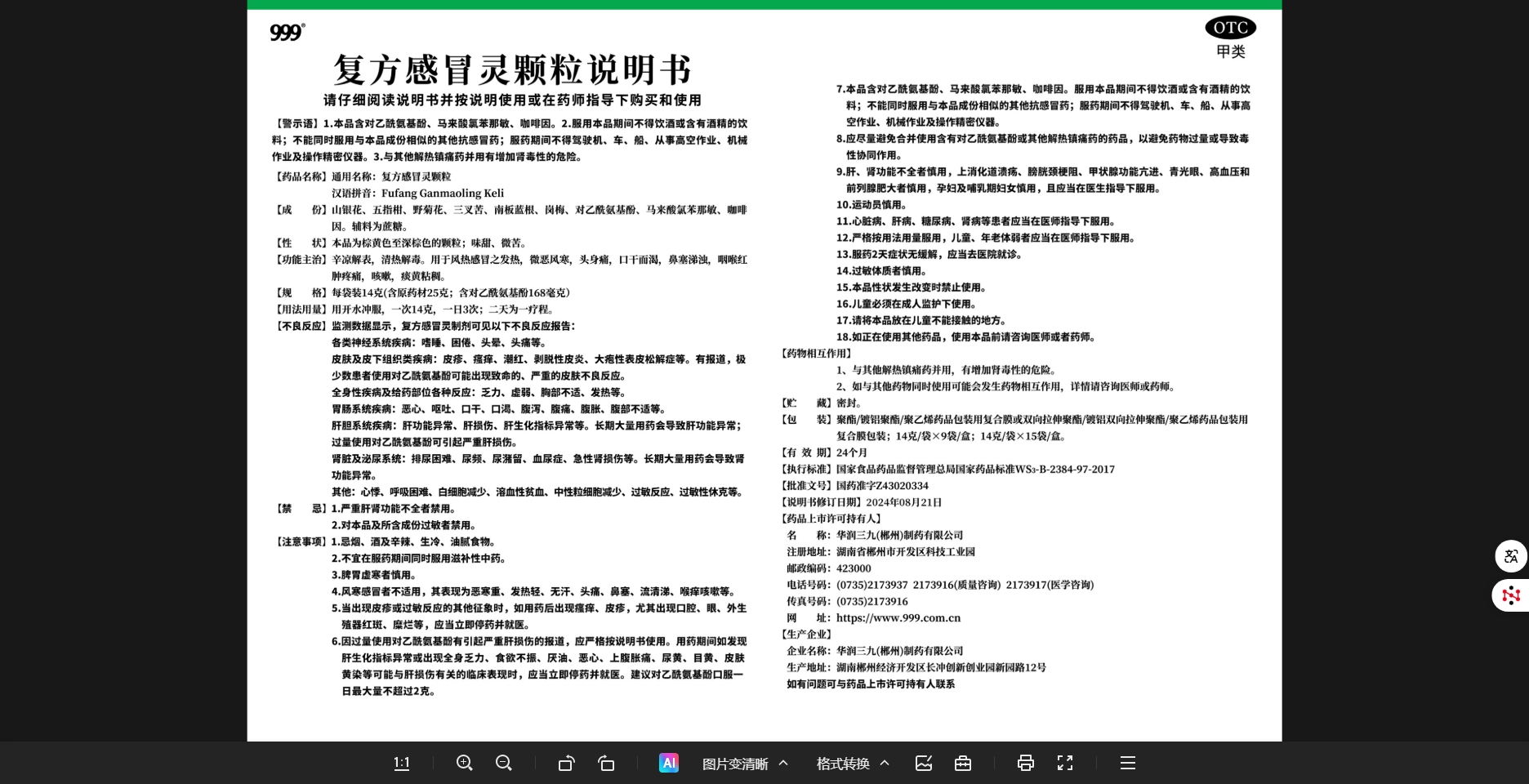 2024年7月2日,國(guó)家藥監(jiān)局發(fā)布了 《關(guān)于修訂復(fù)方感冒靈制劑和銀黃口服制劑說(shuō)明書(shū)的公告》(2024年第81號(hào)),按照公告精神進(jìn)行了說(shuō)明書(shū)修訂,于2024年8月21日獲得備案。