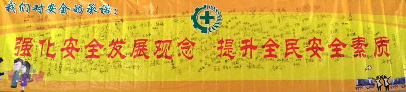 “安全生產月”動員會上,主管以上管理人員在承諾橫幅上簽名。