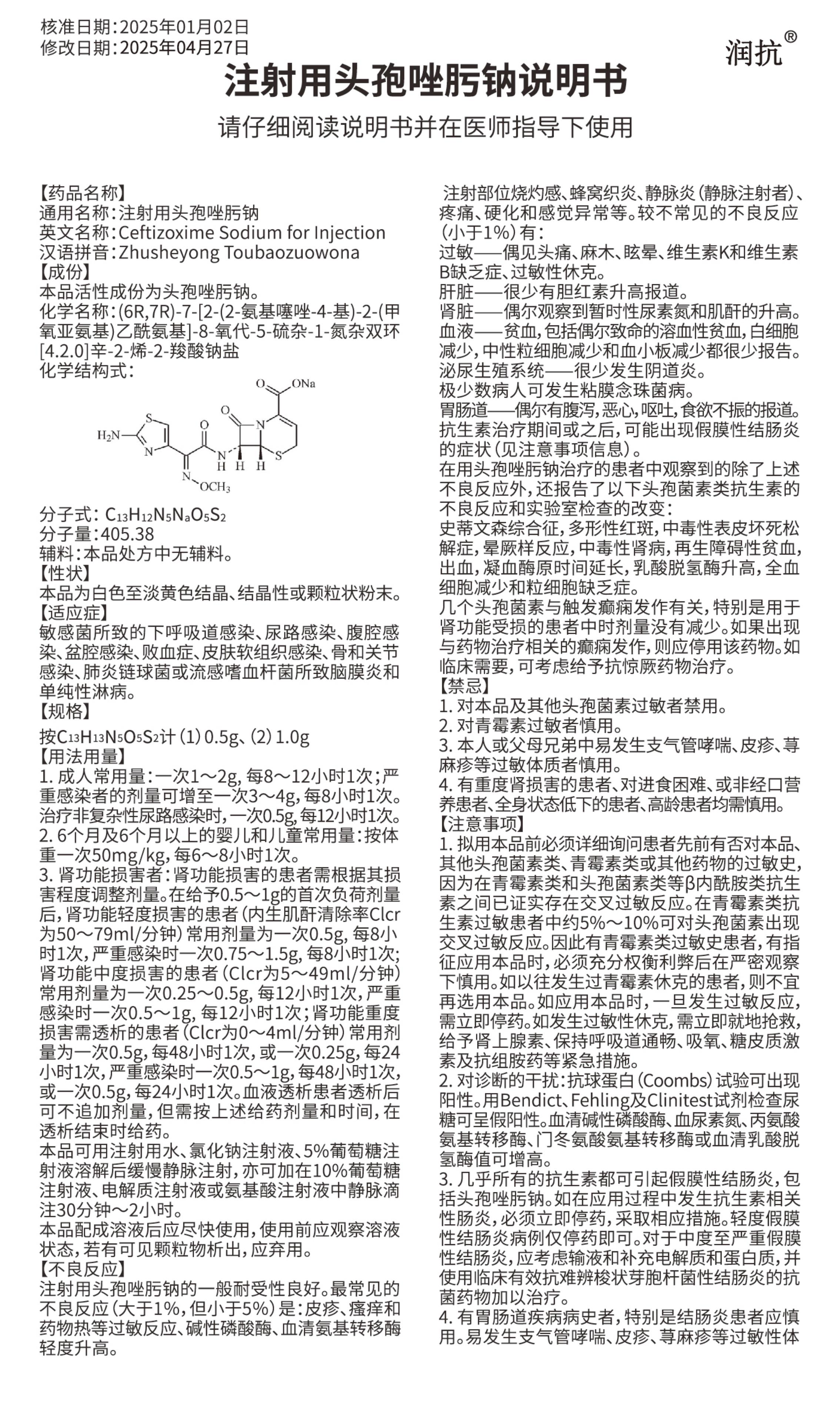 可用于敏感菌所致的下呼吸道感染、尿路感染、腹腔感染、盆腔感染、敗血癥、皮膚軟組織感染、骨和關(guān)節(jié)感染、肺炎鏈球菌或流感嗜血桿菌所致腦膜炎和單純性淋病。