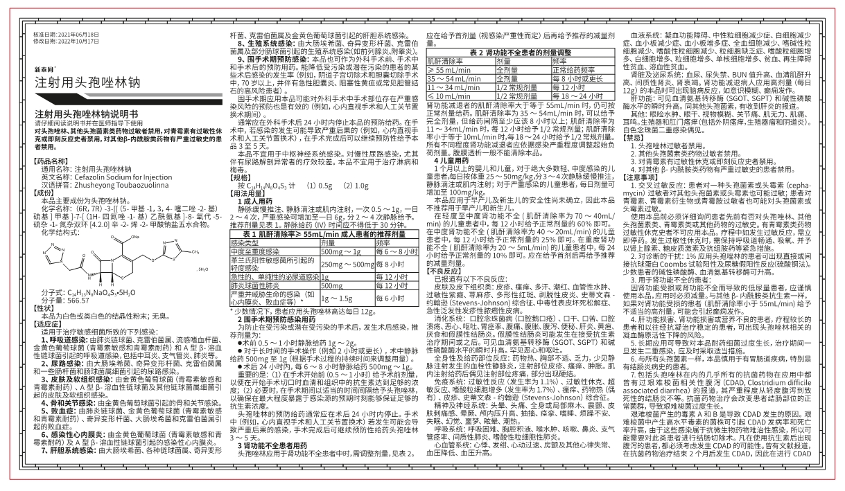 注射用頭孢唑林鈉(一致性評價)