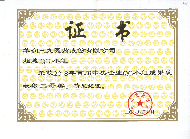 華潤三九(棗莊)榮獲首屆中央企業(yè)QC小組成果發(fā)表賽二等獎(jiǎng)