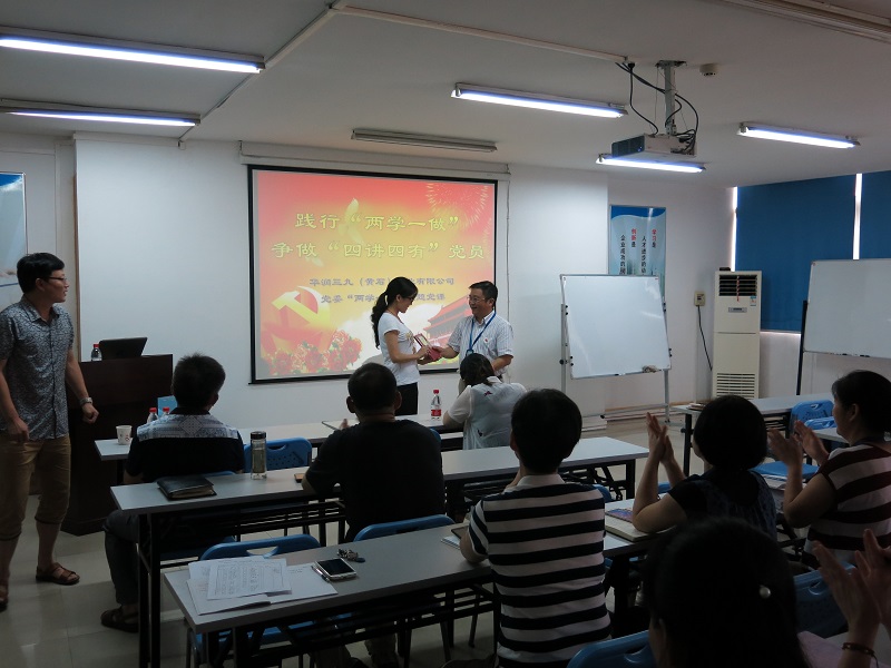為提高學(xué)習(xí)的針對性和有效性,繼續(xù)將“兩學(xué)一做”學(xué)習(xí)教育活動推向深入,繼7月1日參加華潤三九總部組織的視頻黨課學(xué)習(xí)之后,7月6日,華潤三九(黃石)藥業(yè)有限公司黨委特邀請黃石市“兩學(xué)一做”宣講團成員陳幼華教授,為公司全體黨員干部近40人講授了一堂主題為《踐行“兩學(xué)一做”,爭做“四講四有”黨員》的黨課。公司黨建“1+1”結(jié)對單位青島啤酒(黃石)有限公司黨員代表也受邀參加黨課。