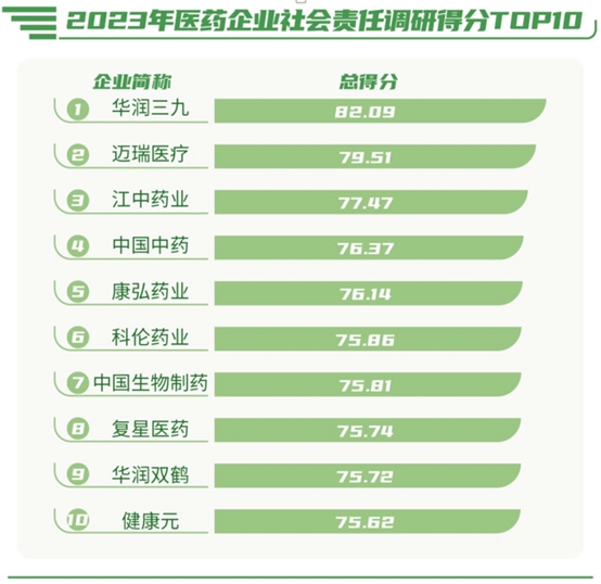 華潤(rùn)三九入選南方周末“2023年醫(yī)藥企業(yè)社會(huì)責(zé)任調(diào)研榜”第一