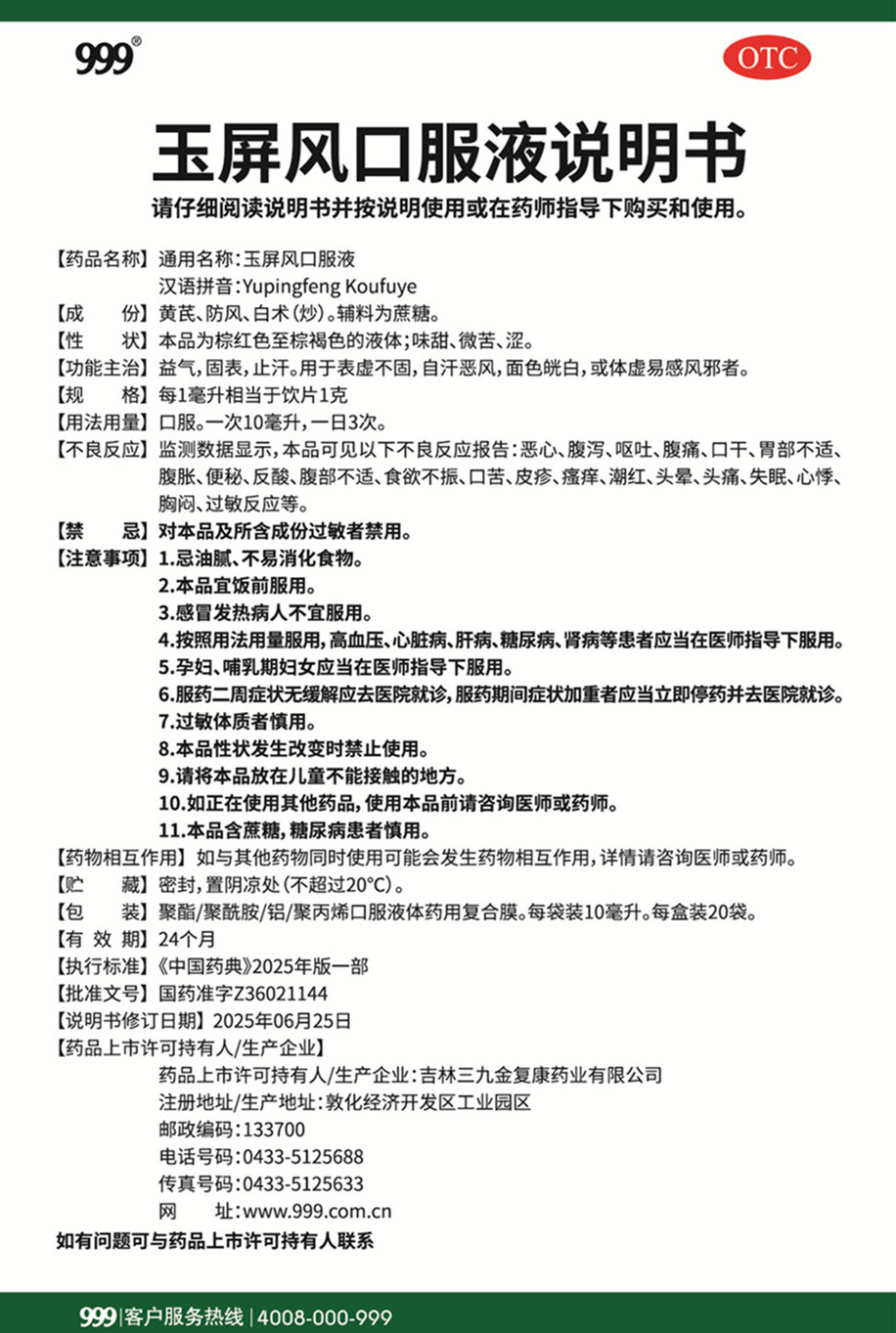 玉屏風(fēng)口服液產(chǎn)品介紹