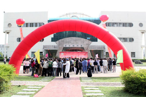 5月4日,天晴氣朗、陽光明媚,神鹿雙鶴環(huán)境優(yōu)美的廠區(qū)內(nèi)花團(tuán)錦簇、彩旗招展,制劑樓正門兩側(cè),兩個(gè)紅色大氫汽球飄蕩在半空,汽球下端兩條寫著“神鹿是我們共同的家園”、“簡單、坦誠、陽光”的紅色條幅隨風(fēng)飄揚(yáng),主題鮮明的大型噴繪活動(dòng)背景板立于大門正前方,與橫臥于音樂噴泉前方的紅色“彩虹門”交相輝映,一派喜慶祥和的景象。在這個(gè)屬于年輕人的節(jié)日里,公司以“團(tuán)結(jié) 激情 和諧 奮進(jìn)”為主題組織開展了“五一”職工趣味運(yùn)動(dòng)會(huì),來自各部門組成的九支代表隊(duì)近一百八十人參加了比賽。