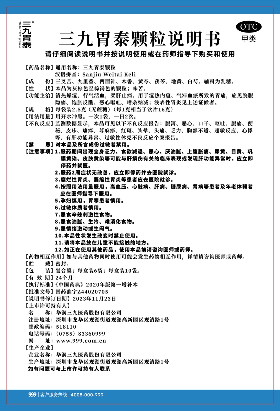 三九胃泰顆粒(2.5g無(wú)蔗糖)說(shuō)明書(shū)[觀瀾2401版]